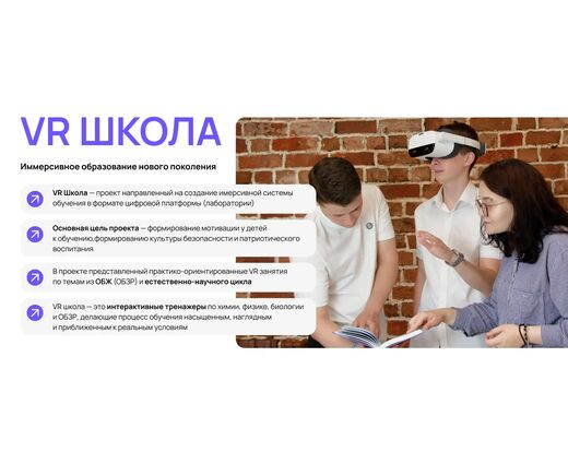 Программа соответствует требованиям национального проекта «Образование» и направлена на повышение качества обучения, вовлечённости школьников и эффективности усвоения материала благодаря глубокому VR-погружению и интерактивным сценарием.