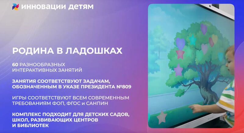 ПО «АктивиУМ Родина в ладошках — все темы» — это современный интерактивный образовательный продукт для дошкольников и младших школьников (4–10 лет), направленный на патриотическое воспитание. Программа сочетает игровые технологии и обучение, позволяя детям в увлекательной форме познакомиться с картой России, символикой страны, народными костюмами, традициями и праздниками.