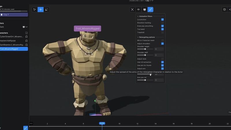 - Ретаргетинг в реальном времени: мгновенно переносите анимации на разных персонажей.