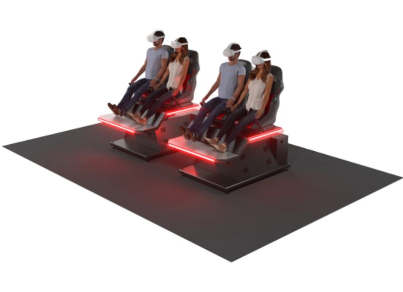 - Динамичные кресла: платформа имитирует движения из фильма — от падения в бездну до крутых виражей и взлётов (наклон до 30° в двух плоскостях).